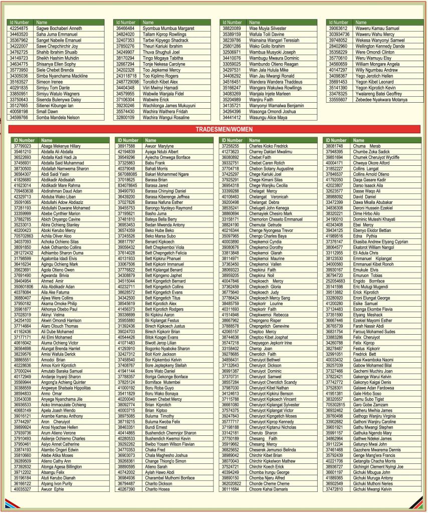 Tradesmen/Women: Report to Ulinzi Sports Complex, Langata, Nairobi, on Monday, 3 November 2025, at 8:00 a.m.